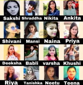 इन घटनाओं के अलावा विभिन्न समाचार रिपोर्टों में कई और नाम भी सामने आते रहे हैं — साक्षी, श्रद्धा, निकिता, अंकिता, शिवानी, मानसी, नैना, प्रिया, दीक्षा, बबली, वर्षा, खुशी, रिया, तनिष्का, नीतू और टीना — जिनकी घटनाएँ अलग-अलग स्थानों और परिस्थितियों में हुईं।