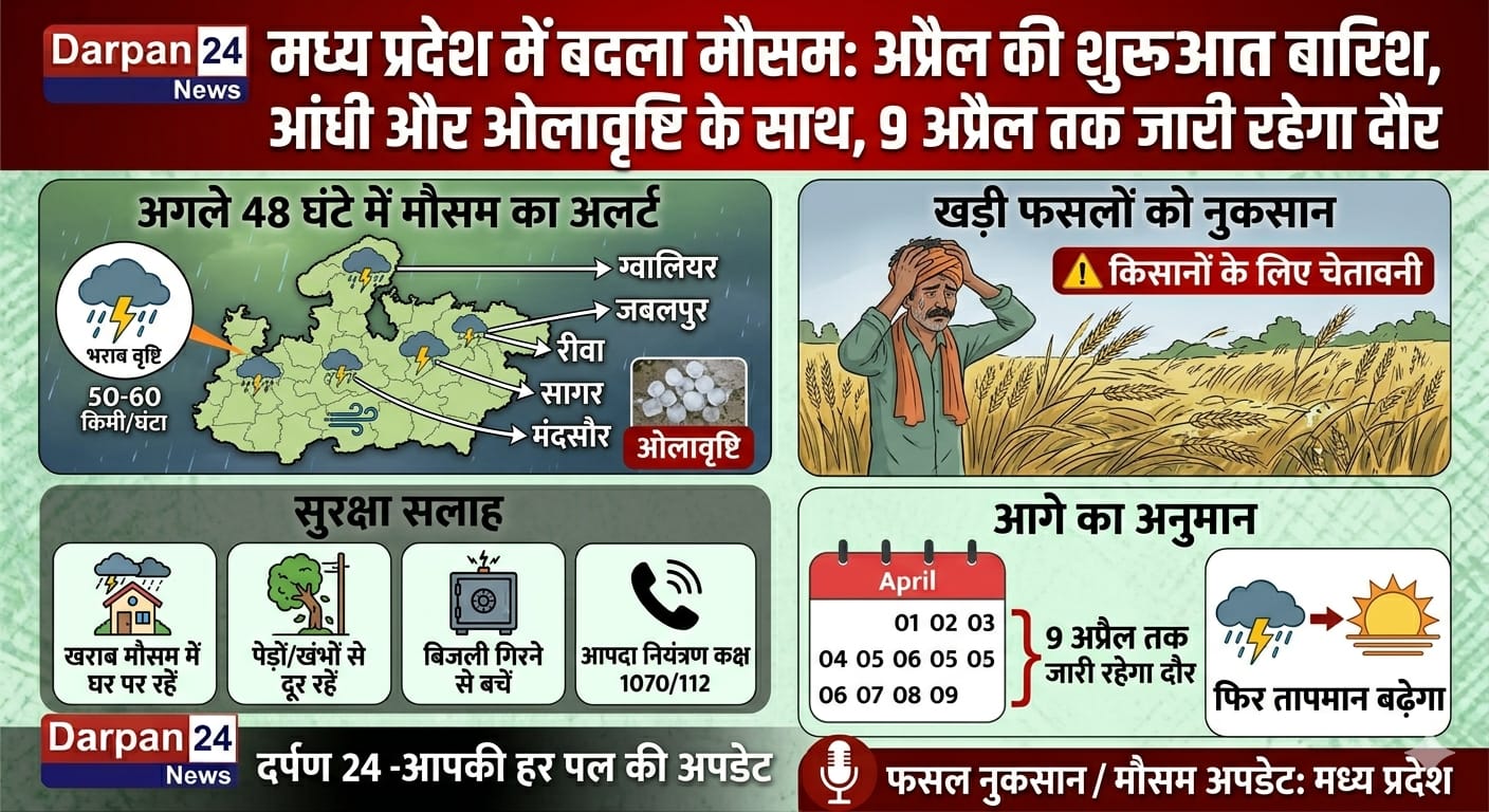 मध्य प्रदेश में बदला मौसम: अप्रैल की शुरुआत बारिश, आंधी और ओलावृष्टि के साथ, 9 अप्रैल तक जारी रहेगा दौर