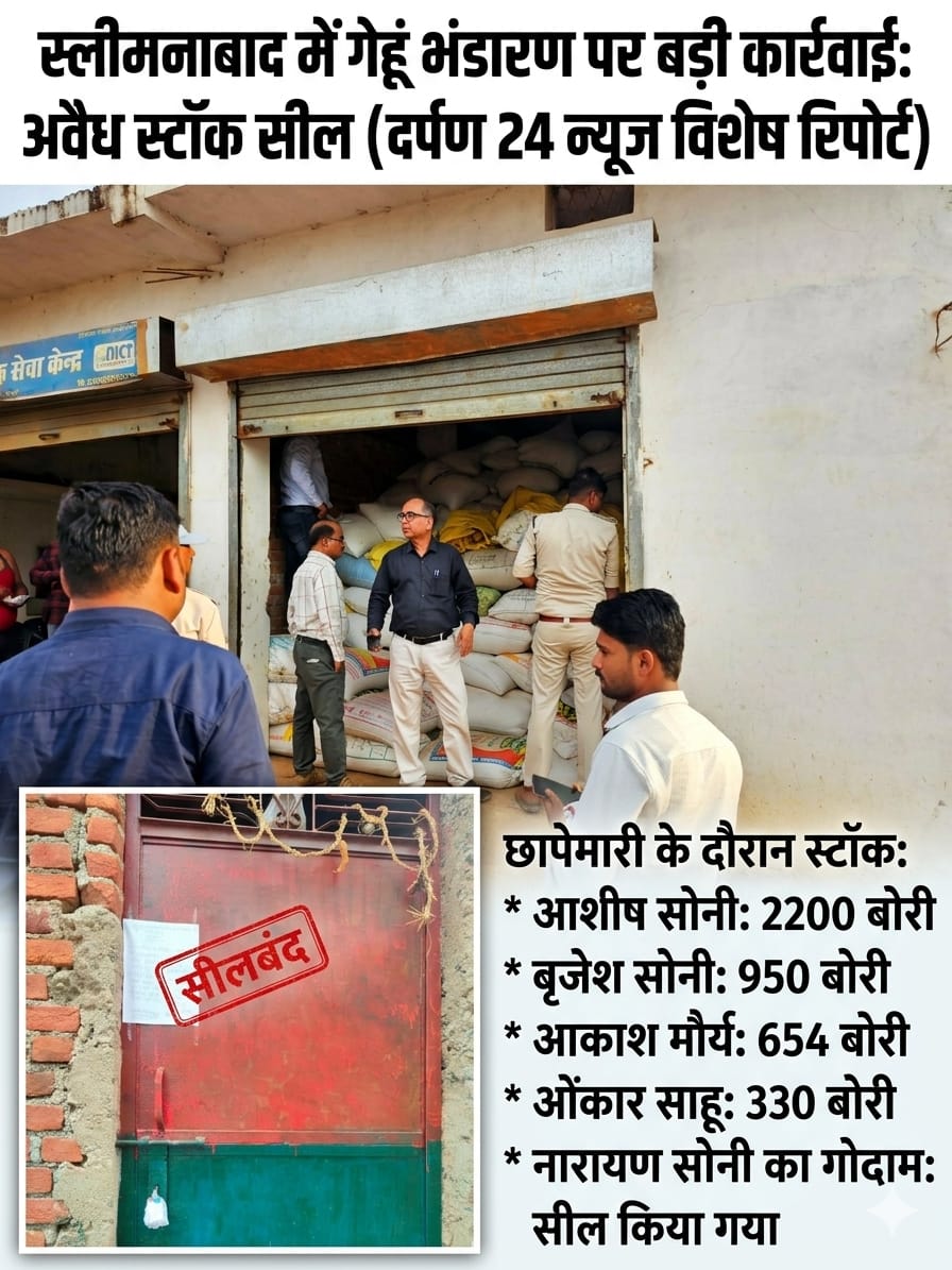 स्लीमनाबाद में गेहूं भंडारण पर बड़ी कार्रवाई: संयुक्त दल की छापेमारी, अवैध स्टॉक सील